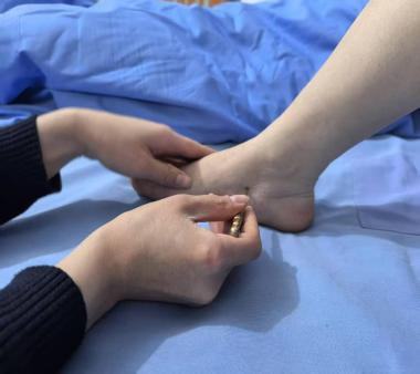 患者李某(化名),男,33岁,因“口干、多饮、多尿半年多,加重1月余”前来肺病·脾胃病·内分泌科就诊。入院时患者血糖控制不佳,监测血糖20.1mmol/L。诊断:2型糖尿病伴血糖控制不佳。在与患者充分沟通后,主管医生李金辛为患者制定了个性化的治疗方案。治疗过程中,我们主要从中医的角度出发,利用中医降糖的三大穴位(然谷穴、地机穴、胃脘下俞穴)每天一两次,每个穴位按压2-5分钟,结合中医降糖操,每天一次,每次15分钟,来改善患者血糖控制的情况,帮助患者将血糖控制平稳,顺利出院。出院时,患者感到非常满意,对我们的中医文化赞不绝口!
