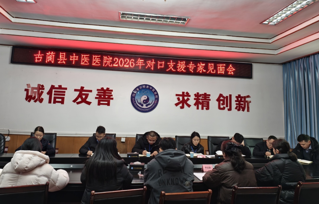 2026年1月4日,古蔺县中医医院召开2026年度对口支援专家见面会。副院长兰世才、相关职能部门负责人、对口支援专家及各受援科室主任参会。会议由科研继教部主任张薇主持。