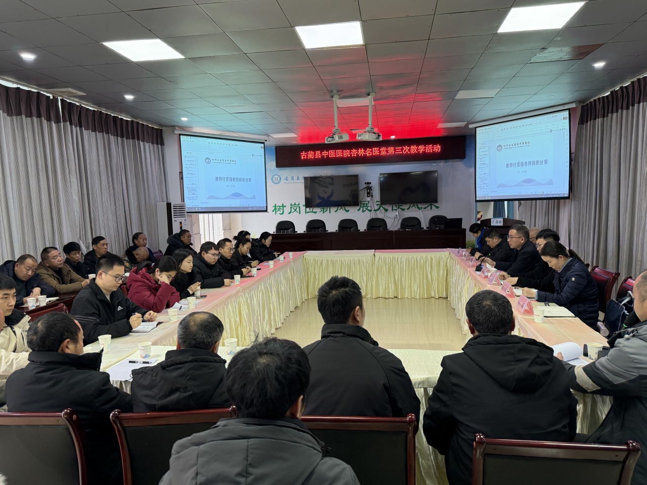 2026年1月23日,古蔺县中医医院在龙山中心卫生院举办第二届“杏林名医堂”第三次教学活动,指导老师付至强、付丹、赵发伦、师承弟子、龙山镇辖区内村医生及龙山中心卫生院中医师齐聚一堂,活动以“义诊实践+病历研讨+经验分享”形式展开。本次活动由“杏林名医堂”班主任赵发伦主持。