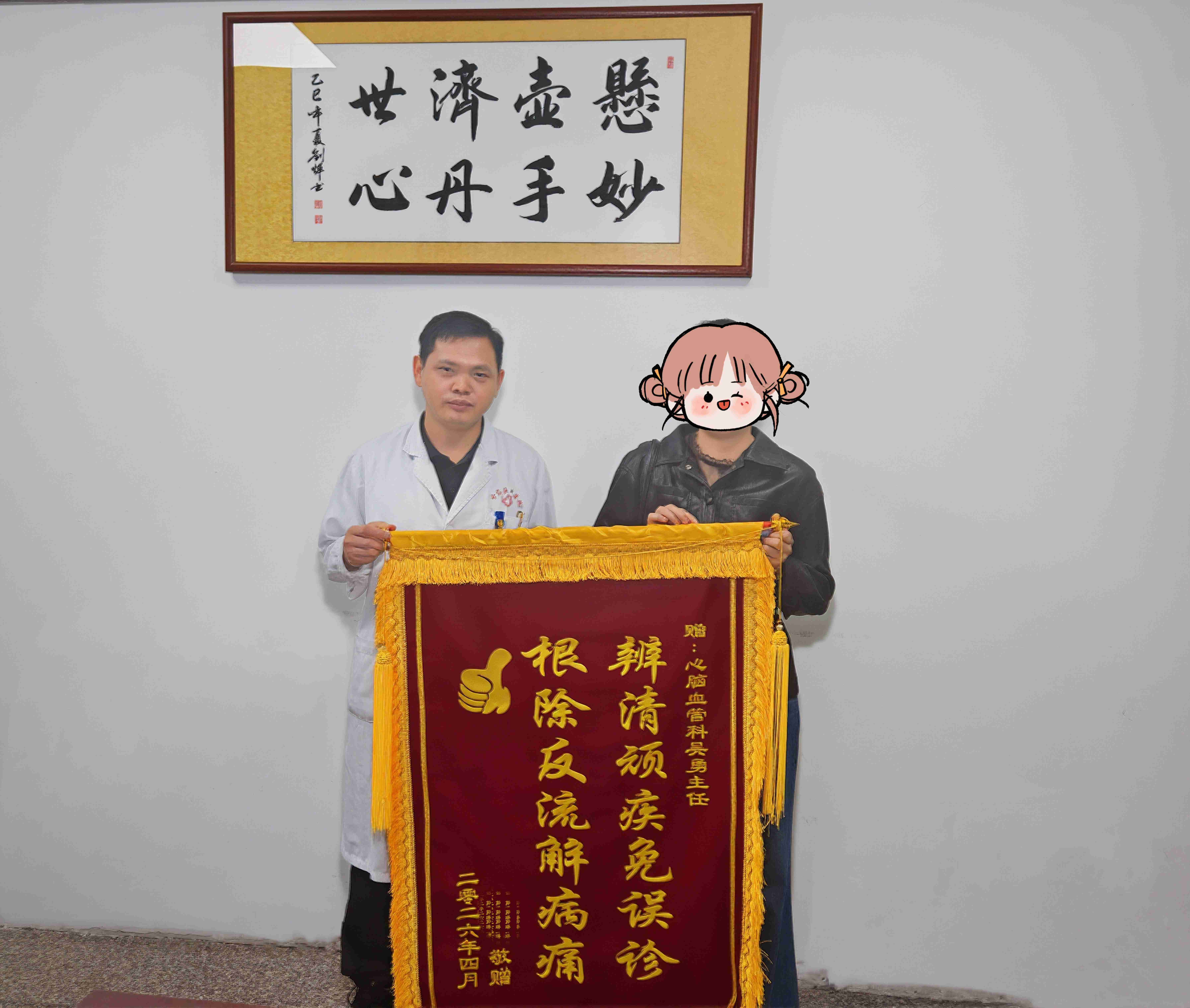 近日,我院心脑病·肿瘤科门诊暖意融融,患者郭女士将一面印有“辨清顽疾免误诊,根除反流解病痛”的锦旗送到吴勇主任手中,以最质朴的方式,表达对医生精湛医术和暖心服务的深深谢意。