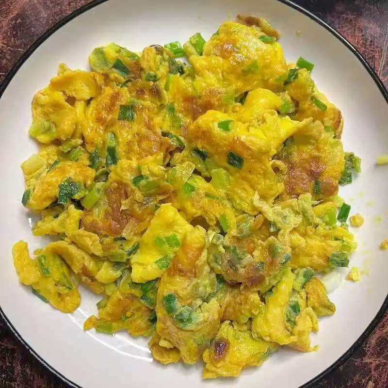 步骤三:锅中倒入适量食用油,油温升高后倒入鸡蛋液,待鸡蛋液凝固,用铲子快速翻炒,炒成小块状,起锅前加入适量盐翻炒均匀,美味即成。