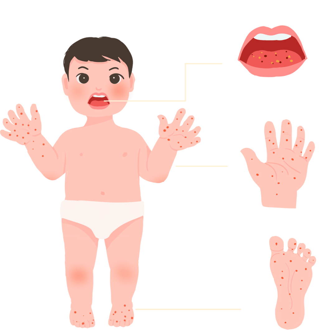 手足口病是由多种肠道病毒引起的一种儿童易感的常见传染病,5岁以下儿童高发,尤其3岁以下婴幼儿风险更高。全年均可发病,4-7月为春夏季高峰,9-11月为秋季高峰。主要致病血清型包括柯萨奇病毒A组4~7、9、10、16型(CVA4~7、9、10、16)和B组1~3、5型(CVB1~3、5),埃可病毒的部分血清型和肠道病毒71型(EV-A71)等。既往以EV-A71和 CVA16为主,目前CVA6已成为继CVA16、EV-A71之后的又一个主要常见病原。感染CVA6与感染传统病毒引起的手足口病皮疹表现不同,部分患者皮损累及范围较大。EV-A71仍是引起手足病重症和死亡的主要病原。
