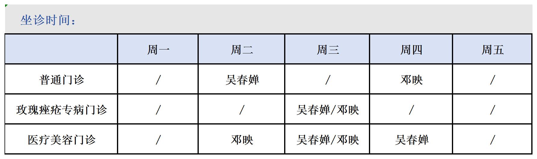 专业擅长:色素性皮肤病:雀斑、雀斑样痣、咖啡斑、太田痣、颧部褐青色痣、贝克痣、老年斑、日晒斑、黄褐斑、纹身等。良性增生性皮肤病:色素痣、粟丘疹、汗管瘤、脸黄瘤、疣等。血管性皮肤病变:酒渣鼻、毛细血管扩张、面部潮红等。遗传性皮肤病:多毛症、毛周角化症等。损容性皮肤病:痤疮、玫瑰痤疮、增生性癜痕、凹陷性癜痕、敏感肌肤、激素依赖性皮炎等。面部年轻化:美白嫩肤、除皱(鱼尾纹、川字纹、抬头纹等)、面部提升、瘦脸瘦肩瘦腿、泪沟填充等。